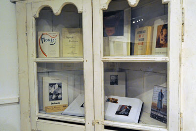 Vitrine avec ouvrages de Marie-Jo Gobron