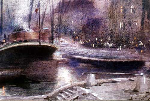 BATEAUX AU CREPUSCULE (Anvers), 1921 - Aquarelle, 15,5 x 23,5 cm - Cat. # 33