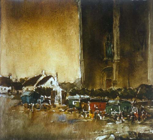 ROULOTTES SOUS LA TOUR, 1943 - Aquarelle, 47 x 49 cm - Cat. # 426