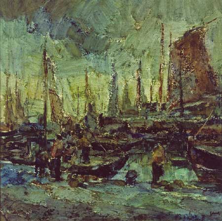 PORT DE PECHE (Blankenberge), 1944 - Aquarelle, 33 x 33 cm - Cat. # 485
