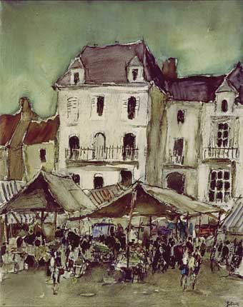JOUR DE MARCHE A VITRE, 1969 - Aquarelle, 45 x 35,5 cm - Cat. # 2179
