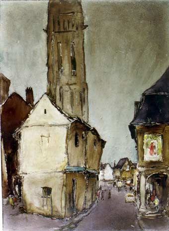 EGLISE A LA GUERCHE 2 (France), 1970 - Aquarelle, 75 x 56 cm - Cat. # 2261