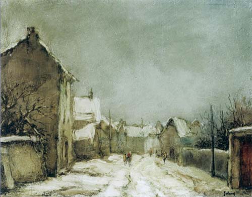NEIGE SUR LE VILLAGE, 1970 - Aquarelle, 35,5 x 45 cm - Cat. # 2304
