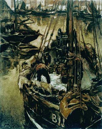 PECHEURS AU TRIAGE (1), 1940 - Aquarelle - 35 x 25 cm - Cat. # 349
