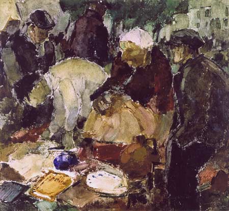 MARCHE AUX PUCES (Bruxelles), 1945 - Aquarelle, 31 x 34 cm - Cat. # 553