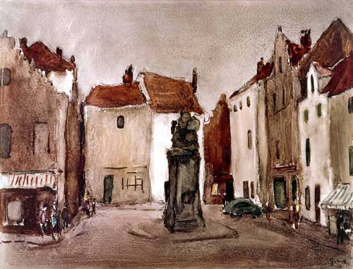 EIERMARKT (Brugge), 1970 - Aquarelle, 31,5 x 42 cm - Cat. # 2262