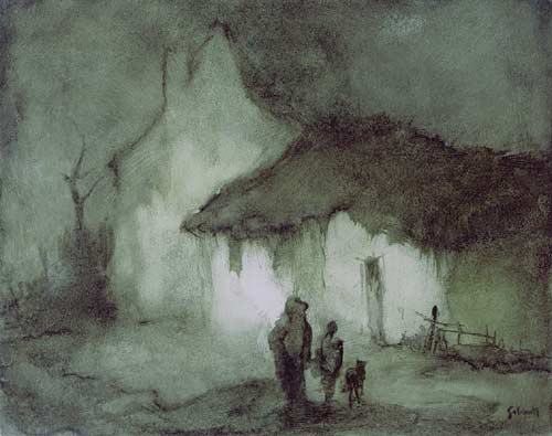 LES VISITEURS DU SOIR, 1980 - Aquarelle, 36 x 46 cm - Cat. # 3232